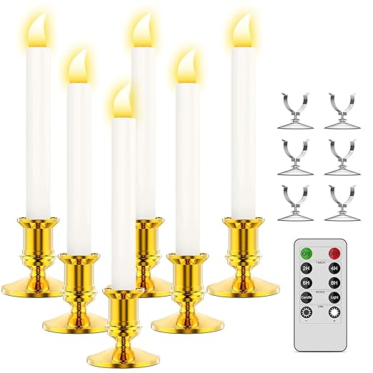 Ronxs Window Candles 6 Pcs Led Candles With Timer Outdoor Christmas Decorations Flameless Candles Battery Operated Flickering Candles With 1 Remote